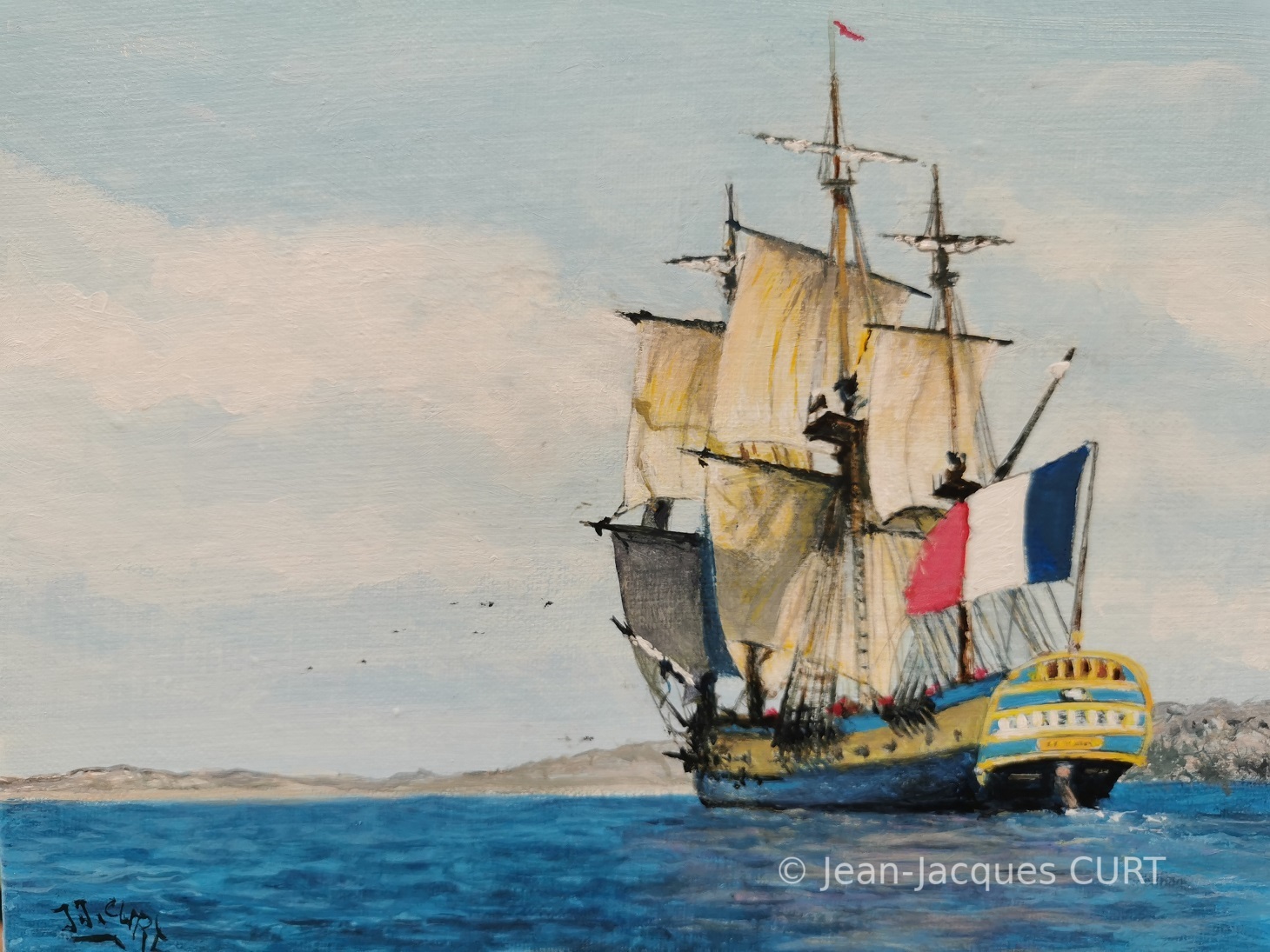 En vue de la côte, l'Hermione